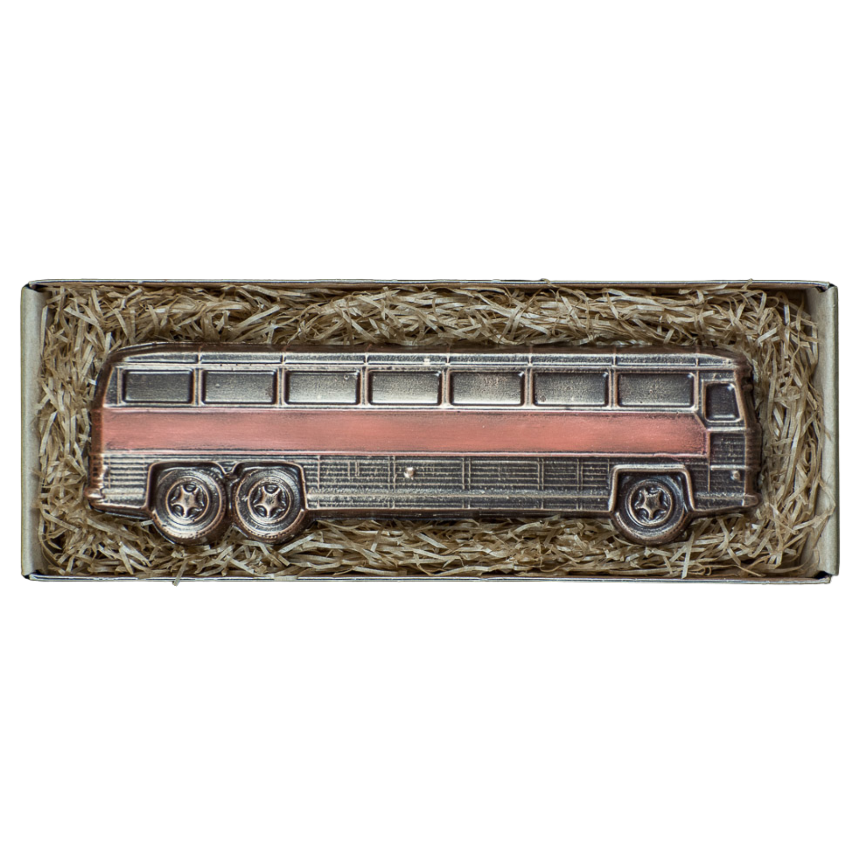 La scatola contiene la sagoma di un autobus in cioccolato fondente colorato leggermente a pennello con coloranti alimentari. Il regalo perfetto per il vostro autista preferito!