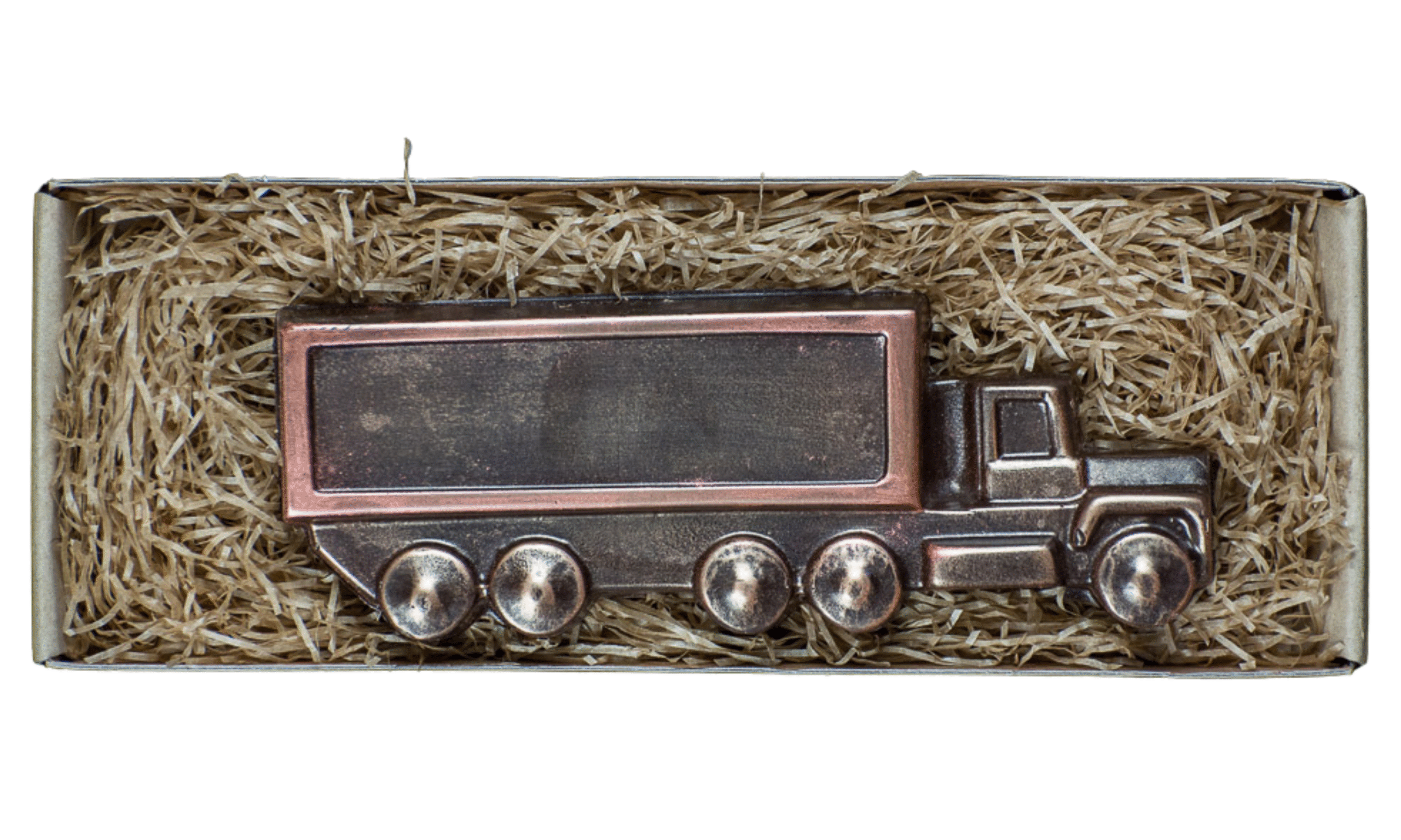 Prodotto artigianale realizzato in Italia Puro cioccolato Piemontese Dipinto a mano Creazione artigianale esclusiva del laboratorio L’Officina del Cioccolato Il regalo perfetto per camionisti golosi!! La scatola contiene la sagoma di un camion in cioccolato fondente fondente colorato leggermente a pennello con coloranti alimentari.