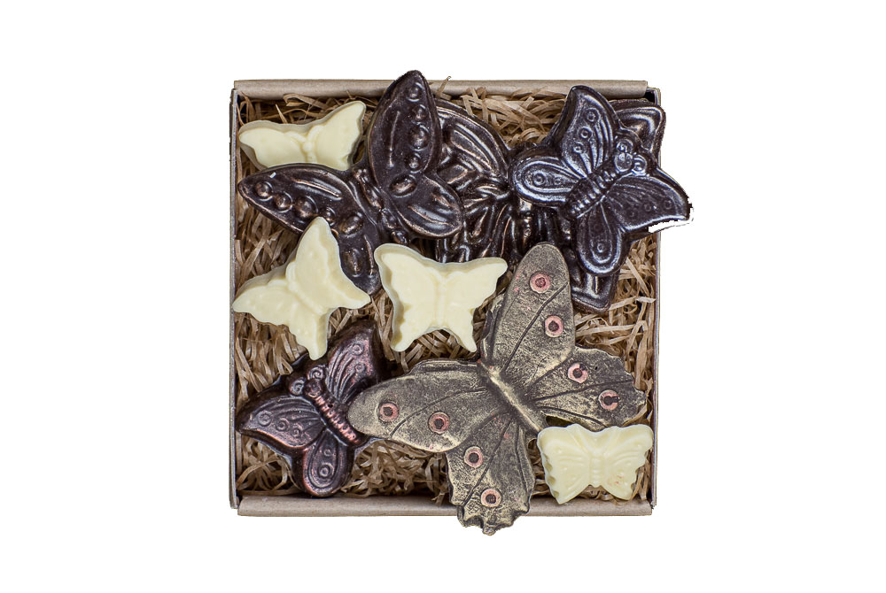 Il regalo perfetto per un’amica, la mamma oppure per chi colleziona farfalle di tutti i materiali queste sicuramente mancano! La scatola contiene la sagoma di alcune farfalle in cioccolato bianco e fondente colorato leggermente a pennello con coloranti alimentari.