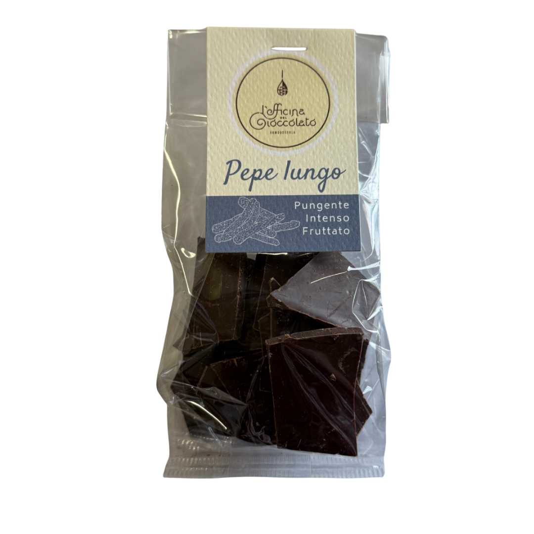 Cioccolato fondente abbinato al pepe lungo , una varietà di pepe dalla forma inusuale e dalle proprietà simili al pepe nero ma meno piccante con note dolci e fruttate, con un sentore di cannella, liquirizia e anice.