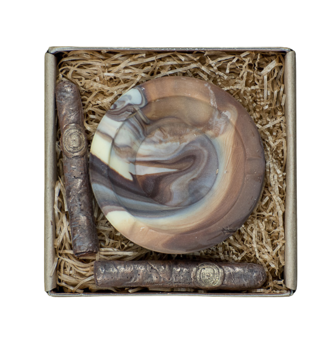 Posacenere effetto marmorizzato con cioccolato fondente e bianco.